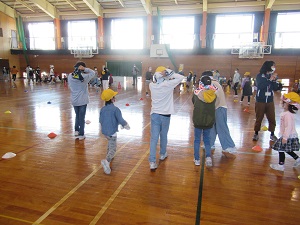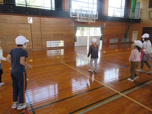 そよかぜ委員会が主体となり、5年生と仲良く遊ぶ集会をしました。「ミツバチゲーム」というペアの一人が目隠しをして、ペアの5年生に声を掛けてもらいながらゴールを目指して楽しく活動しました。