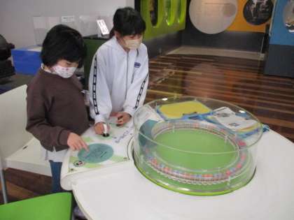 富山市立科学博物館へ行ってきました。班の仲間と強風体験やウォータージェットなどの体験をし、自然や科学のすごさや不思議さを感じていました。また、展示物から、今学習中の海洋問題について考えている姿も見られました。