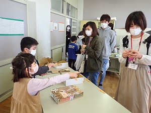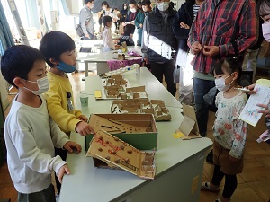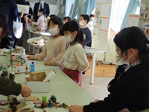 かざり屋さんや的当て屋さん、コリントゲーム屋さんなど、いろいろなお店がオープンしました。お客さんと一緒にゲームを楽しんだり、素敵な秋のケーキを売ったりました。