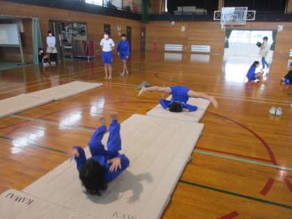マット運動の学習では、美しく回ろうと意識しながら取り組んでいます。苦手な技を何度も練習したり、友達にアドバイスをもらいながら練習に励んだりする姿が見られました。
