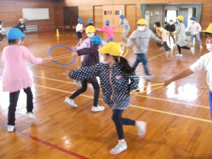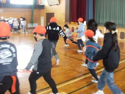 そよかぜ集会の様子です。3年生と4年生で声をかけ合って活動しました。