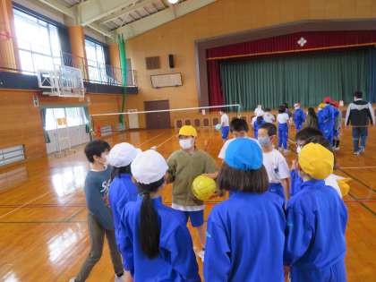 学年でソフトバレーボールを行いました。チームごとにみんなが楽しめるルールを決めたり、練習したりするなど考えて行動していました。「ナイス」や「ドンマイ」と声をかけ、楽しく活動することができました。