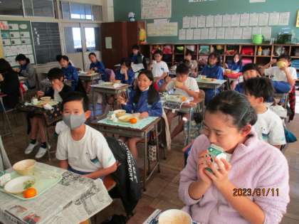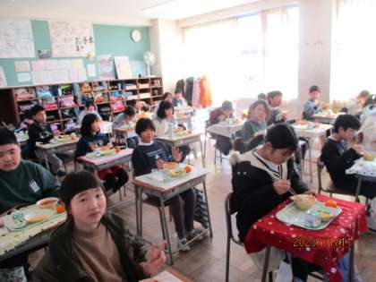 ソフト麺をおいしくいただきました。マスクを外したみんなの笑顔を見ることができる時間です。
