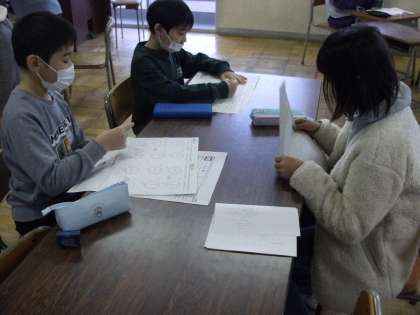 朝学習の時間を使って、異学年交流で勉強会を開きました。「いつもと違う雰囲気で集中することができた」「高学年の人たちと関わることができて楽しかった」と振り返っていました。今後もこのような機会を設けて、子供たちが楽しく学習に向かえるように支援していきます。