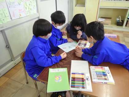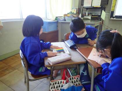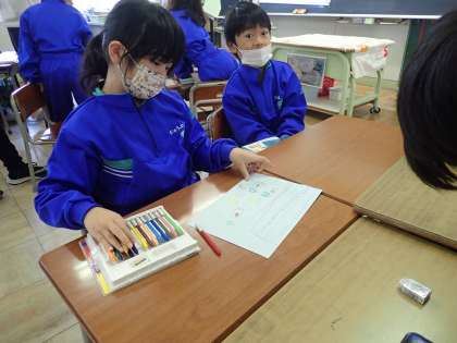 いつもおいしい給食を作ってくださる調理員さんへ、メッセージを書きました。一人一人の感謝の言葉とかわいい絵で仕上げました。調理員さんへは、サプライズで届けます。みんなの気持ちが調理員さんに届くといいですね。