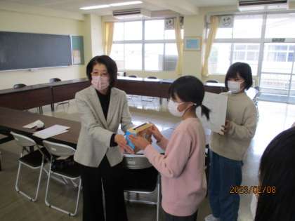 全校児童に呼びかけ、約200枚の書き損じハガキが集まりました。ユネスコ協会の方にお渡ししました。