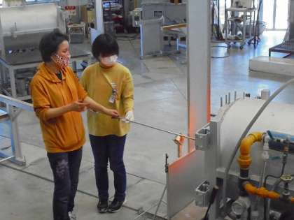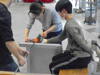 友達が制作している様子を応援しながら見学していました。空気を当ててガラスを冷ます作業では、制作している友達と一緒に盛り上がり、とても楽しい雰囲気でした。どんな作品ができ上がるのか、完成が楽しみです。