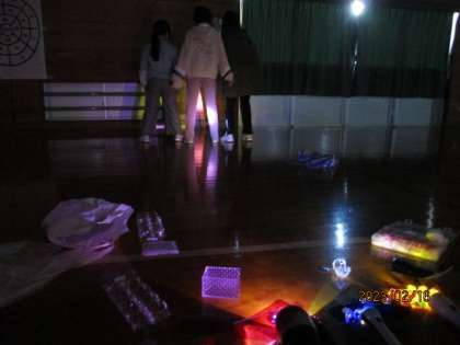 空間にできる光や色の重なりを楽しんでいました。