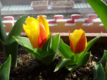 なかよし級で育てていたチューリップが、かわいらしい花を咲かせました。春の訪れをお祝いしています。