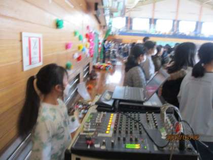 放送、音楽準備、PC操作、インタビューなどの細かい仕事。飾り付けや片付けなど、いろいろな仕事がありましたが、5年生一人一人が自分の役割をしっかりと果たしていました。