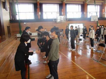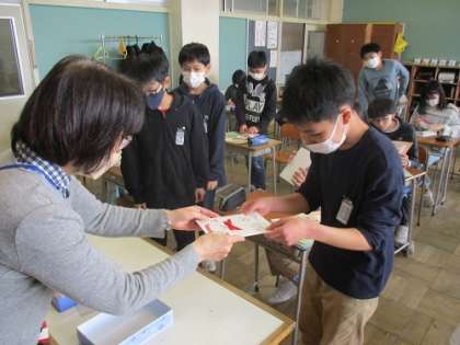 その後、養護教諭の先生からは「入学から6年間の成長カード」を一人一人にサプライズでもらいました。赤いリボンの長さが、各自の身長の伸びの長さです。「こんなに背が伸びてたんだ」「育ててくれた家族に感謝だね」と、じっくり見入っている姿が印象的でした。