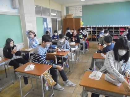修了式のあと、校長先生、教頭先生、教務主任の先生に今までの感謝を届けようと全員分の手紙を渡しました。「毎朝、声をかけてくださったことに元気をもらった」「たくさんのことを優しくアドバイスしてくださった」「休み時間や授業中の楽しい会話がうれしかった」など、一人一人が文章にしたためて感謝を伝えることができました。