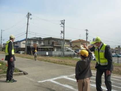 交通安全教室を行いました。横断歩道を渡るときには、左右をしっかり確認したり、右側歩行を意識したりするなど安全に登下校する方法について学習しました。