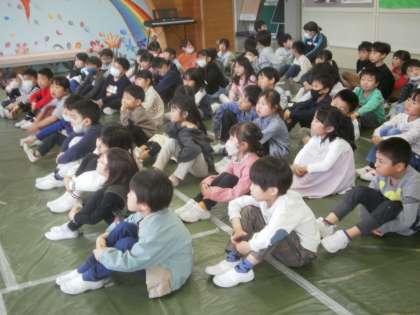小学1年生になってどんなことを頑張っていきたいか、広田小学校の合い言葉「や・か・た」を基に考えました。勉強や運動、友達の話をきちんと聞くこと等それぞれ頑張りたいことをたくさん発表しました。これからの小学校生活にわくわくしている様子でした。