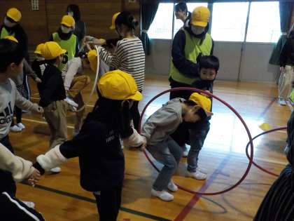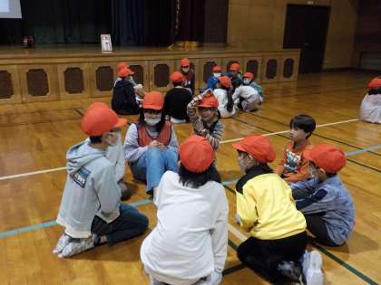 全校が集まって、そよかぜ班に分かれて活動しました。自己紹介をしたり、輪くぐりをしたり、楽しい時間でした。