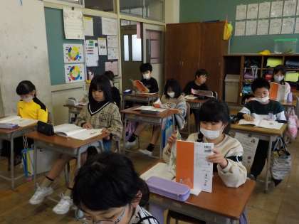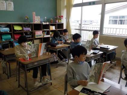姿勢に気を付けて音読しています。1人1人堂々と音読できるようになってきました。