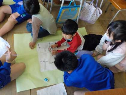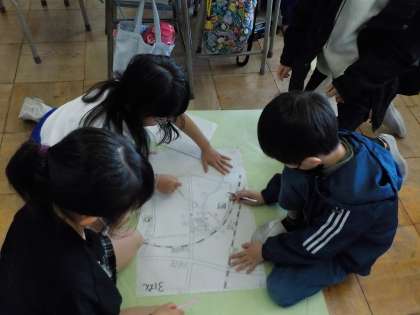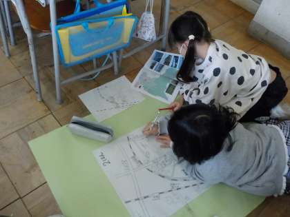 学習参観でお家の方に手伝っていただいた絵地図づくりが、各クラスで進んでいます。