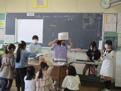 4年生では、自分たちの係活動が大切にしているもの、好きでみんなに伝えたいことを学級集会で楽しみながら広げました。この学級集会で、仲間の「好きなもの」を知り、もっと仲間と仲良くなろうと、どの係の企画も「やってみようのコーナー」や「教えてあげますのコーナー」などを取り入れ、みんなが参加できるように工夫していました。
