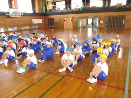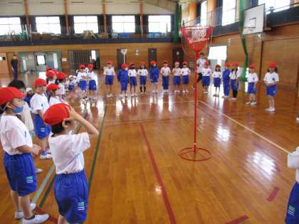 運動会の玉入れの練習を初めて一年生としました。すぐに整列する様子がとても頼もしく思えました。