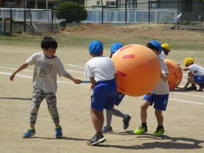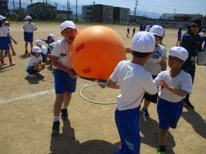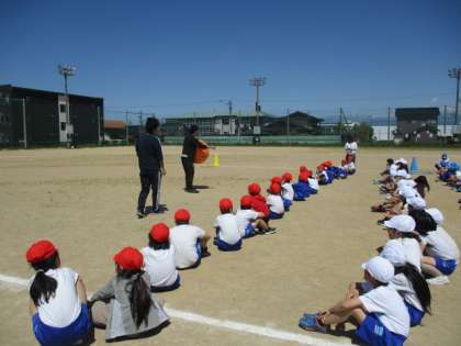 体育の授業の様子です。3,4年生との団体競技の練習をしました。3年生とチームを組んでボールを運ぶ競技です。チームを決めるときは4年生が中心となり団をまとめている姿や、練習ではコツを優しく教える姿などが見られました。まだ何度か練習がありますが、運動会当日どのようになるのかがとても楽しみです。