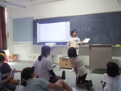 学年集会を開きました。子供たちが日頃取り組んでいる係活動を基に、学年全員が楽しめるような企画を考え活動しました。体育館で運動をしたりマルチメディア教室で出し物を見せたりしました。