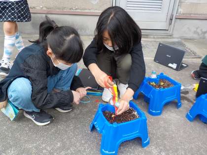 ホウセンカの芽がようやく出始めました。出てきた芽を嬉しそうに観察し、これからの成長を楽しみにしている様子でした。