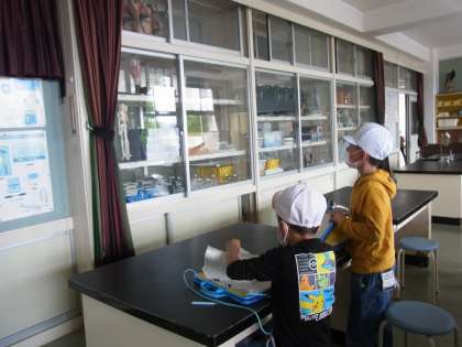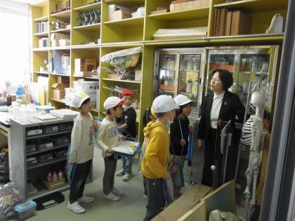 2階にある部屋の探検を行いました。グループで役割を決め、時間を守って探検することができました。教室に戻った子供達は、「理科室にキラキラのボールがあったよ」「会議室で大きな鉛筆を見つけたよ」など見つけた物を友達ににこにこ笑顔で話していました。