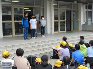 出発式の様子です。「行ってまいります」と力一杯挨拶をし、学校を出発しました。