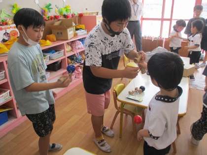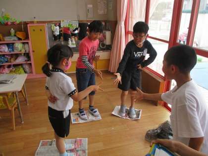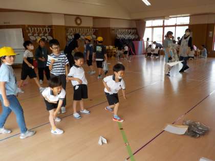 総合の学習の様子です。「みんながハッピー&スマイル!〜ひろたこども園の子供たちといっしょに遊ぼう大作戦〜」で実際にひろたこども園に行き、活動しました。子供たちはこれまでに「一緒に遊ぶってどういうことだろう」「どんな遊びだったら園児は喜んでくれるかな」園長先生からのアドバイスである「園児の目線に立つってどういうことかな」などを考え、準備をしていました。第一回目である今日は、子供たちの中で楽しみだけでなく、緊張や不安もあったと思いますが、実際に活動のなかで園児と関わる子供からはとても明るい表情がたくさん見られました。