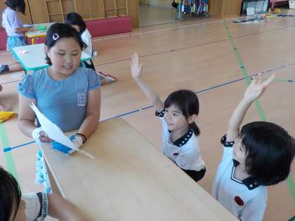 活動を終えた子供たちは「2回目もよろしくお願いします」と園児達や先生方に挨拶をしました。お世話になった園長先生に「次はもっとパワーアップしてきます」と伝える子供もいました。学校に帰り振り返りをすると「活動の内容は良かったけれど時間配分がうまくできなかった」「四年生に当たり前のように伝わることが園児には伝わらなかった。園長先生のアドバイスである園児の目線に立つのは難しいと思った」とうまくいったところや課題、第二回に向けて大切にしたいことや活動内容等を考えていました。第二回ひろたこども園の訪問に向けて、話合いや一人で考える時間、準備する機会を設けて子供たちにとって素敵な学びになるよう支援していきます。