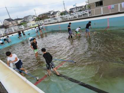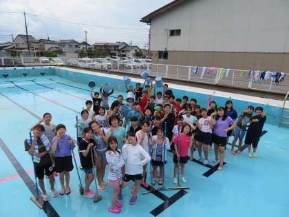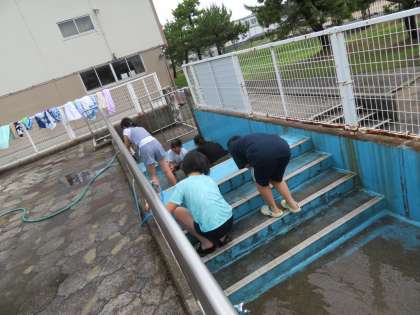 プール清掃を行いました。土や葉っぱやこけの汚れをみんなで一生懸命に綺麗にしました。ピカピカになったプールを見てプール開きが待ち遠しい子供たちでした。