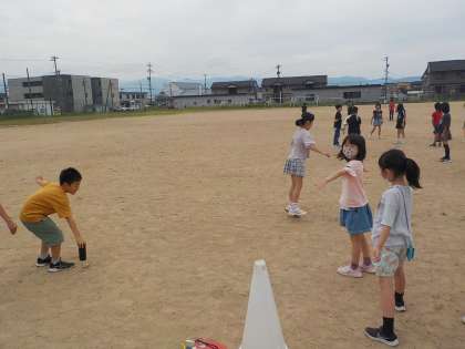 10mの位置を予想してメジャーで測りました。思ったよりも10mが短かったようで、驚いている子供がたくさんいました。