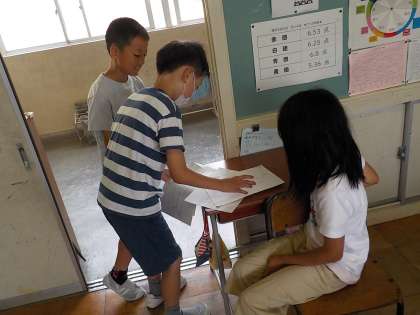 給食の残食を減らそうと調理員さんの思いをインタビューしたり、友達のいいところを紹介しようとスタンプラリーを企画したりしています。学級をよりよくしようと、自分たちで考えて活動に取り組んでいます。