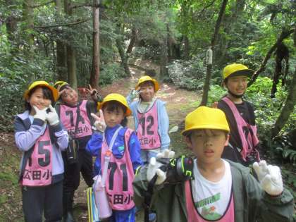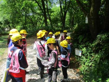 森のオリエンテーリングの様子です。各班で山の中にあるポイントの場所に行き、協力してクイズに答えました。猛暑の中で子供からは疲れている姿も見られましたが、一生懸命活動に取り組みました。また、子供の中には、山の中に落ちてあるゴミを拾うなど自然のためにできることを考え行動する子供がいてとても感心しました。