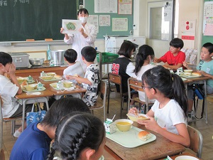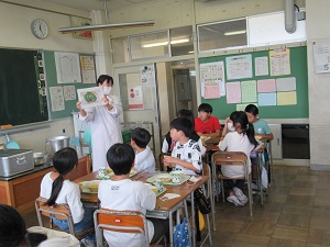 今日の給食には、エゴマドレッシングサラダが出てきました。栄養教諭の先生からえごまは血液をさらさらにする栄養があることを教えていだだきました。さらに、えごまを食べると10年長生きすることも知ることができると知り、子供たちはたくさん食べて元気になりたいと言っておいしくいただきました。