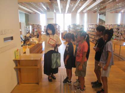 富山市ガラス美術館・図書館本館を見学した様子です。学校では普段見ることができない芸術に触れたり、図書館の仕組みや利用の仕方を学んだりしました。「また家族と来て本を借りたい」「迫力のある作品を見ることができて楽しかった」などの声が聞けました。