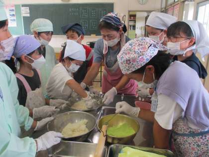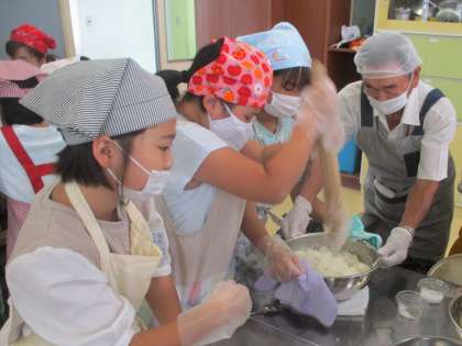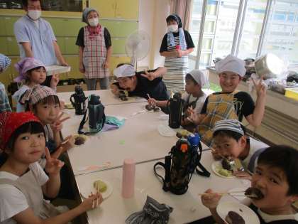 総合的な学習の時間と関連させて広田校区社会福祉議会の方々と関わりながら、おはぎづくりを体験しました。「貴重な体験をさせてくれてありがとうございました」「お店で置いてある物より美味しくできなかったけど、美味しかった」と全体の前で子供達が発表するなど、普段したことのない体験から楽しさを感じていました。また、グループで優しく声を掛け合いながら活動する姿に感心しました。