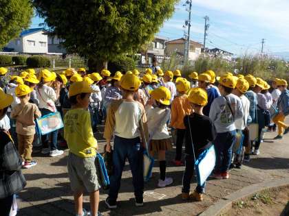 「はっぱが落ちているよ」「トンボがたくさん飛んでいる」など歩きながらもたくさんの発見をしていました。
