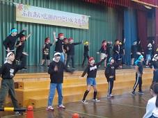 22日に広田ふるさと祭りがあり、5年生が出演しました。2チームに「ソーラン節」と「ダンスホール」を踊り、最後は全員で合唱奏「音楽のおくりもの」を歌とリコーダーでお客さんに届けました。「笑顔でキレのある動きで踊りたい」や「体育館にハーモニーを響かせたい」と目標をもち表現しました。子供たちは、緊張しながらも練習の成果を出し切っていました。