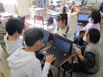 総合的な学習の時間の様子です。個人発表やグループ発表の練習をしています。グループの中でアドバイスをし合ったり、自分の発表を動画で撮って確認したりするなど、学び発表会をよりよくしようとひたむきに取り組む姿を見ることができました。