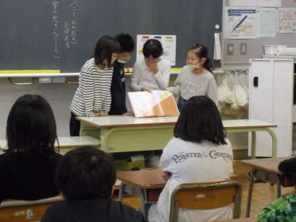 以前の2組に続き、1組でも「はんで意見をまとめよう」の学習で2年生に読み聞かせをしに行ってきました。