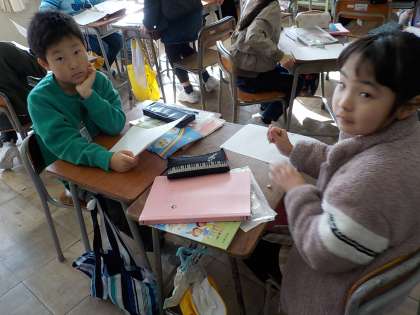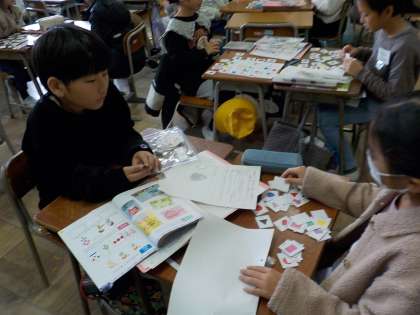 英語で形の言い方を学習しています。数や大きさを尋ねる英語も聞き取れるようになりました。