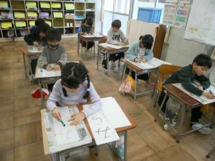 硬筆墨を使って、書き初めをしました。集中して、丁寧に取り組んでいました。「難しいけどきれいに書けて嬉しい」「ゆっくり書くと上手にできる」といった声がたくさん聞こえてきました。
