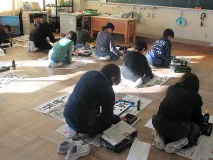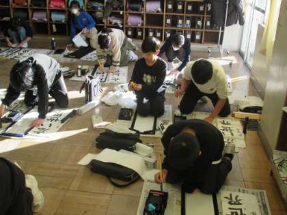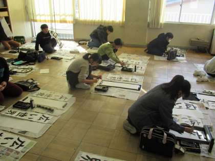 「広い世界」を一筆一筆ゆっくり丁寧に書きました。教室はしーんと静まりかえり、集中していました。