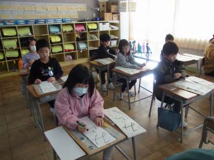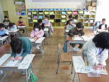 今までに練習してきた成果を発揮しようと、集中して取り組んでいました。姿勢に気を付けながら、一文字一文字丁寧にゆっくりと書いていました。