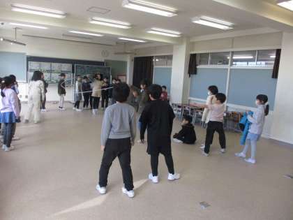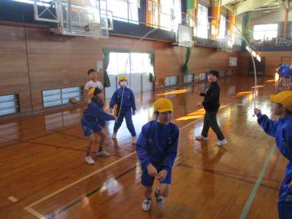 大縄飛びの様子です。1月25日に学年の団ごとに記録を測る大縄大会があります。子供達は、本番に向けて体育の授業や休み時間を通して熱心に練習しています。子供達同士で温かい声を掛け合い、記録の向上を目指す姿がたくさん見られ感心しています。