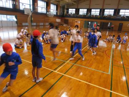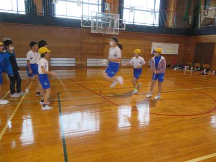 体育科では大縄跳びを行っています。改善点を話し合ったり練習を重ねたりして、各団自分たちの最高記録に挑戦しています。「はい!!はい!」と声を出して盛り上げたり、違う団の友達を応援したりと学年で高め合いながら練習に励んでいました。