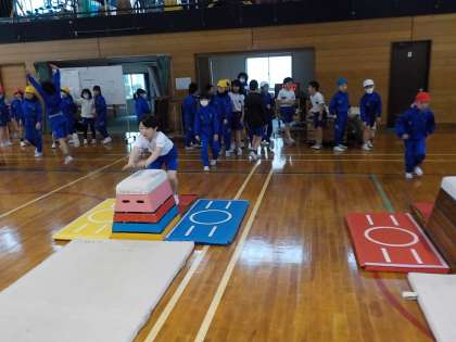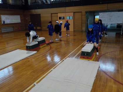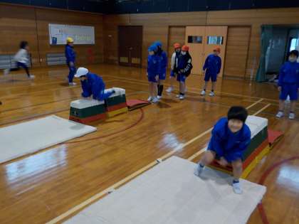 今日から跳び箱の学習に入りました。自分の課題にあった場所を選んで、進んで練習しました。