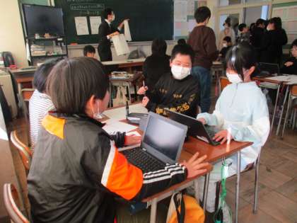 5年1組算数科の様子です。アンケート調査の結果をクロムブックでグラフ化する学習です。