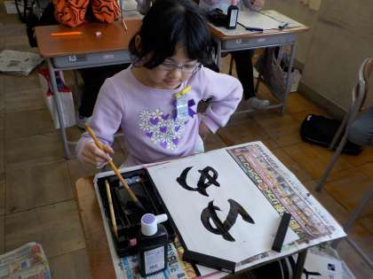 今回はひらがなで「ゆめ」と書きました。今まで書いていた漢字と違い、曲線が多いひらがなに苦戦していましたが、手本をよく見て真剣に練習していました。